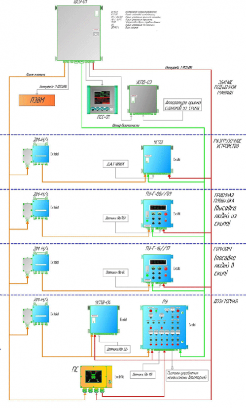 Схема. Аппаратура МАСС для скипового подъёма (нажмите для увеличения)